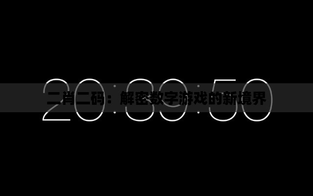 随着科技的飞速发展,数字游戏已逐渐渗透到人们的日常生活中,成为不可或缺的一部分,澳门,作为亚洲的娱乐之都,一直在积极探索数字游戏的新领域和新玩法。“二肖二码”正是在这样的背景下应运而生,它不仅仅是一种数字游戏,更是一种全新的娱乐体验和文化与科技的完美结合。